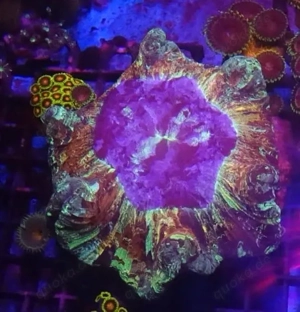 Zum Verkauf steht eine Trachyphyllia der absoluten Mastergrade-Klasse mit einem intensiv leuchtenden violett-pinken Zentrum und spektakulär kontrastreichen Außenbereichen. Unter Blaulicht zeigt sie eine außergewöhnlich starke Fluoreszenz und Tiefe ein echtes Sammlerstück und Highlight in jedem Riffaquarium. Die ...