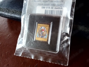 Münzbarren Flagge (Wappen) Bayern, 999er Feingold 16 x 22,4 mm, original verschlossen, Echtheitszertifikat. Privatverkauf (keine Rücknahme, Garantie u. ä.) Preis zzgl. Porto bei Versand
