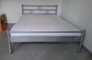 Klassisches Metallbett. Es zeichnet sich durch ein minimalistisches Design in Silbergrau mit charakteristischen Quer- und Längsstreben am Kopf- und Fußteil aus. Größe 140 x 200 cm Mit hochwertigem verstellbaren Lattenrost und einer Meradiso Matratze (Sommer- und Winterseite) Der Bezug kann abgezogen ...