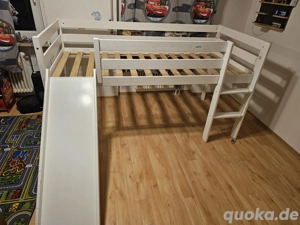 verkauft wird ein Kinder Bett mit rutsche. Von der rutsche fehlen 2 Schrauben zum befestigen