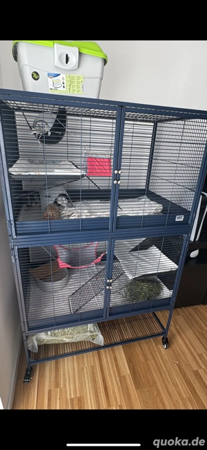 Unser liebenswertes Familienmitglied ist von uns gegangen. Zur Trauerbewältigung trennen wir uns von seinem Hab und Gut. Günstig abzugeben sind: MORE Nagarium Deluxe Art.Nr.: 1324495 nach moderner Haltungsform auf Rollen 2 Etagen Unten PVC-Platten, oben Gitterstäbe, vorne und seitliche Türchen, Deckel ...