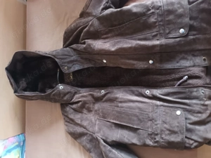 Wintermantel, Leder, rauh, gefüttert, braun, mit Kapuze, Zustand gut