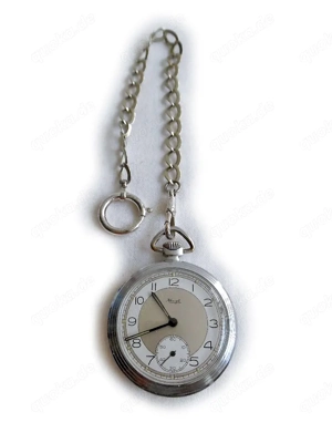 Seltene Armbanduhr von dem schweizer Hersteller "Roamer". Modell: Rotopower 44. Die Uhr befindet sich noch im top Zustand. Voll funktionsfähig. Eigenschaften: Gehäuse: Stahl (Stainless Steel Back), vergoldet, D=35 mm, wasserdicht. Band: Braunes Lederarmband mit einer Dornschließe. Zifferblatt: Silber, ...