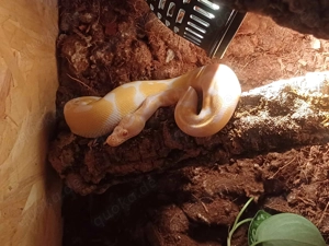 **Königspython (Python regius), ca. 3 Jahre alt, in verantwortungsvolle Hände abzugeben** Ich gebe meinen männlichen Königspython aus persönlichen Gründen ab. Er ist am 12.07.2023 geboren und somit 2,5 Jahre alt, frisst zuverlässig (alle 3 4 Wochen Frost-Ratten mit 60 90 g), häutet sich problemlos und ...