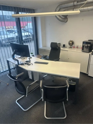 Verkaufe ein gepflegtes Büromöbel-Set von Steelcase. Enthalten: 5-eckiger Schreibtisch (FrameOne Plus 245x80 cm) Kabelmanagement Schiebetürenschrank weiss (bild 4) Rollcontainer (3 3 3) anthrazit (bild 3) 2 Besucherstühle Neupreis ca. 2.500 (2024), sehr guter Zustand. Einzelverkauf ...