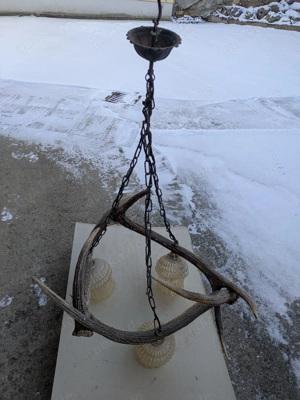 Verkaufe eine Hängelampe aus 3 Rothirschstangen Maße ca. 70 x 70 x 100 cm Bei Fragen gerne melden
