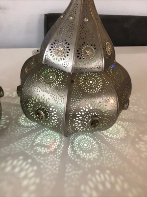 Wunderschöne orientalische Metall-Laterne mit feinen Mustern. Sorgt für ein warmes, gemütliches Licht und schöne Lichtreflexe im Raum. Ideal als Dekoration für Wohnzimmer, Balkon oder Schlafzimmer. Zustand: gut sehr gut Material: Metall Farbe: Silber Nur Abholung (oder Versand nach Absprache). Kategorie: Haus ...