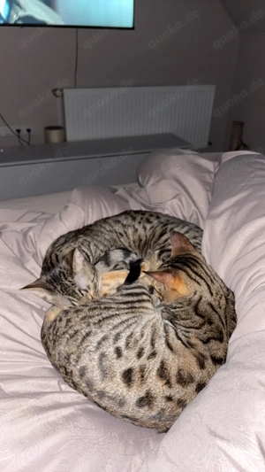 Schweren Herzens muss ich mich von meinen 2 Bengalen verabschieden. Die beiden Tiger sind sehr kuschelbedürftig, lieben spielen sowie fressen und vorallem (verdauungs)nickerchen. Geboren sind sie am 31.09.2024, sind gesundheitlich topfit sowie geimpft, kastriert und gechipt. Verkauft werden die Zwillinge ...