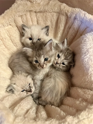 Unsere Ragdoll Dame Elli hat am 14.02.26 4 bezaubernde Kitten zur Welt gebracht. darunter sind 3 Jungs und ein Mädchen. Sie werden bei uns bestens sozialisiert und werden an Alltagsgeräusche gewöhnt. Bei ihrem Auszug ab dem 09.05.26 sind sie stubenrein sowie an Nass und Trockenfutter gewöhnt sowie 3- ...