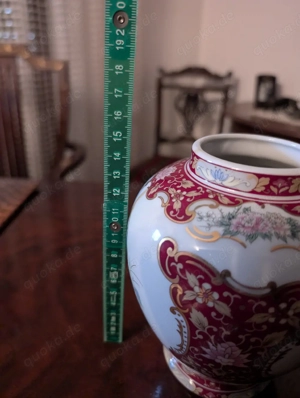 Die Deckelvase ist so gut wie neu. Sie steht in einer Vitrine.