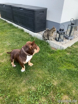 Zum Verkauf steht mein rund ein Jahr alter American Pocket Bully. Pablo ist ein aufgeweckter, liebevoller und treuer Begleiter, der gerne spielt, kuschelt und besonders den Kontakt zu Kindern genießt. Er ist gut sozialisiert, versteht sich hervorragend mit anderen Hunden und zeigt auch bei kleinen Kindern ...