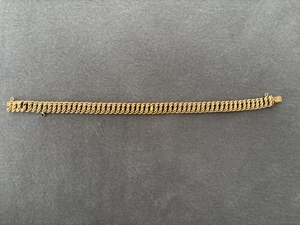 Schönes Gold Armband in 585er Gold Länge 19cm breit 7mm Gewicht 10,90 Gramm leider ist die Verschluss kette verloren gegangen stört aber nicht und sie bleibt zu