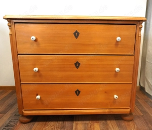 Aus der handwerklichen Überarbeitung unseres hausinternen Schreinereibetriebes mit Möbelwachs geht oben gezeigte Kommode in so gut wie tadellosen Zustand aus massivem Fichtenholz hervor. Die drei Schubladen haben eine großzügige Innenabmessung von 77 cm Länge, 44 cm Tiefe, 16 cm Höhe. Die Außenabmessungen ...