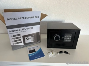 digital stahl Safe, einer wurde nur geöffnet, 2 mal vorhanden. beide sind komplett neu. leider können wir das nicht brauchen. einer kostet 35