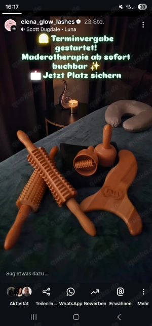 Erleben Sie die KRAFTVOLL WIRKUNG der Madero Massage eine traditionelle Massagetechnik mit speziell geformten Holzwerkzeugen. Diese Methode wirkt tief im Gewebe und unterstützt den Körper auf natürliche Weise. Vorteile der Madero Massage: -Fördert die Durchblutung und den Lymphfluss -Unterstützt den ...