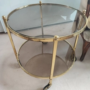 Vintage Messingtisch * Beistelltisch * Glastisch * rollbar
