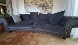 Biete sehr schöne XL Sofagarnitur, bestehend aus : XL Sofa XL Ohrensessel runder Hocker dunkelbrauner Vintage Style Maße Sofa : Breite 277cm Tiefe 135cm (leicht gebogen, größter Abstand von der Wand links und rechts an den Armlehnen) Maße Sessel : 130cm breit, 150cm tief, Sitzhöhe 44cm Maße Hocker ...