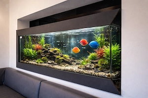 Ich verkaufe ein hochwertiges, modernes Einbau-Aquarium, das perfekt als stilvoller Blickfang für Wohnräume, Büros oder Ladenflächen geeignet ist. Maße: Breite: ca. 200 210 cm Tiefe: ca. 28 30 cm Höhe: (bitte ergänzen) Das Aquarium ist bereits in eine Wandkonstruktion integriert und wirkt ...