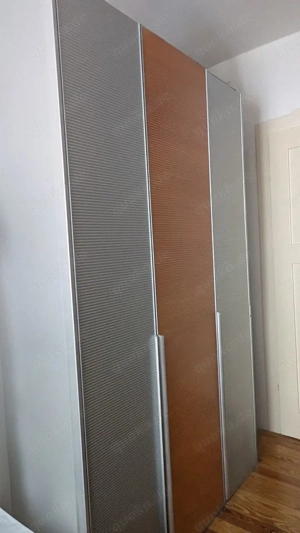 Robuster Kleiderschrank in modernem Design abzugeben gegen Abholung. Maße: Breite: 146cm, Höhe: 236cm, Tiefe 45 cm Der Kleiderschrank muss vor Ort zerlegt und abtransportiert werden. Bitte entsprechendes Werkzeug mitbringen. Beim tragen kann ich gerne helfen. Abholung in München Nähe Karl-Preis- ...
