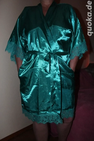 Biete hier einen sehr schönen Damen Kimono Satin, mit Spitze abgesetzt, Smaragd Grün sehr angenehm zu tragen, Top Zustand mit Innenschlaufe und Band außen Bei Fragen gerne melden Beachte auch meine anderen Artikel, vieles muss weg.... Privatverkauf