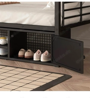 Verkaufe hier ein praktisches Etagenbett aus schwarzem Metall. Das Bett bietet folgende Features: Stabile Metallkonstruktion in mattem Schwarz Sicherheitsgeländer am oberen Bett Integrierte Leiter für sicheren Aufstieg Praktische Staufächer im unteren Bereich Geeignet für Standardmatratzen Perfekt ...