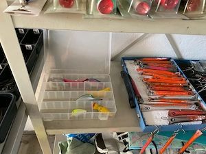 Blinker wobbler Haken Schnüre, Blei usw vieles original verpackt günstige Paket Preise Besichtigung nach Vereinbarung Garagen Zugsng