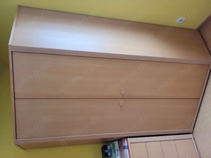 gebrauchter Eckkleiderschrank buche furniert - 111,8cm Länge Breite und 204,4cm Höhe - mit Einlegeböden abgetrennte Stauräume inkl. Bereich mit Kleiderstange