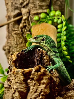 Wir haben eigene Nachzuchten von Jemenchamäleons ( Chamaeleo calyptratus ). Geboren Anfang Januar 26 stehen Sie Ende März, Anfang April zur Abgabe. Alle sind sehr agil und fressen gut. Sie werden mit guten Vitaminen versorgt. Kein Versand!! männlich: 60,- weiblich : 50,- Bei Interesse gerne melden ...