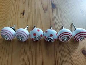 Ich verschenke 6 schöne Möbelknäufe in weiß rosa und weiß rot.