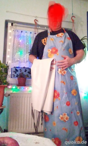Ich genieße deine Hand mit Creme unter meiner Wachstuch Schürze während die anderen Hand meinen Hintereingang massiert. Dein steifes Glied drueckste schön an meinen Arsch ,nachher darfste mich hart stoßen auf der grossen Wachstuch Tischdecke,wo noch dein Sperma drauf ist und dein Pipi von gestern. Wir ...
