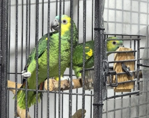 Verkaufe schweren Herzens mein Blaustirnamazonen-Pärchen aus Zeitmangel. Beide sprechen schon sehr gut. Die beiden sind ein harmonisches Paar: Weibchen: 2 Jahre alt (geboren am 8.7.2022) Männchen: 5 Jahre alt (geboren am 9.5.2021) Beide sind gesund und munter Käfig kann gerne mit übernommen ...
