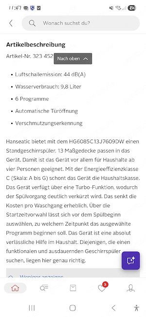 Standgeschirrspüler 2 Jahre alt jung. Funktioniert ohne Probleme mit automatischer Türöffnung.