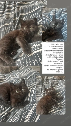 Hallo liebe Katzenliebhaber innen! Am 22.01.2026 hat unsere bezaubernde BKH Katze Nala ihren Wurf mit 3 kerngesunden und zuckersüßen Kitten. Es sind insgesamt 3 Kitten: 1. Junge grau gestreift (reserviert) 2. Mädchen blh grau (frei) 3. Mädchen Braun Schwarz (frei) Die Abgabe der Kitten erfolgt erst ...
