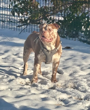 ABKC Pocket Bully Stud Chocolate Tri Merle Elite Bloodline Top Structure Hochwertiger ABKC registrierter Pocket Bully Deckrüde steht ausgewählten, gesunden Hündinnen zur Verfügung. Stud Information: Rasse: American Pocket Bully Alter: 1 Jahr Gewicht: 30 kg Größe: 42 cm Farbe: Chocolate Tri Merle Registrierung: ...