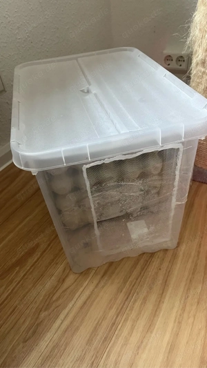 Verkaufe meine Dubia-Schaben Zuchtgruppe mit praktischer Aufbewahrungsbox. Die Gruppe besteht aus: 6 Männchen ca. 50-60 Weibchen einige Jungtiere viele Eierkartons als Versteck- und Lebensfläche Die transparente Box (ca. 29 30 42,5 cm) ist perfekt für die Haltung geeignet und wird mitgeliefert. ...