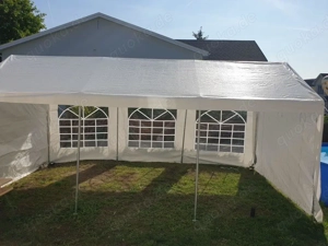 Vermiete ein Partyzelt 5x6m (Foto zeigt das 3x6) - hochwertige 38mm Stahlrohrkonstruktion + 180g qm geschweißte (somit 100% wasserdicht) starke PE Plane inkl. 4 Seitenteilen (2x mit Fenstern in Rundbogenoptik und 2 mit separaten Eingängen giebelseitig - wir haben auch noch Zelte in 3x6m, 4x8m und 5x8m Aufbauzeit ...