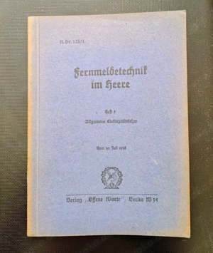 Fernmeldetechnik im Heere Heft 1 Allgemeine Elektrizitätslehre Heeres Dienstvorschrift (H.Dv.) 125 1 vom 19. Juli 1938 Verlag 'Offene Worte' Berlin W35 Unbeschädigtes Original, 193 Seiten, mit zahlreichen herausklappbaren Illustrationen und Detailzeichnungen, nur mäßig vergilbt. #Dienstvorschrift #Heer ...