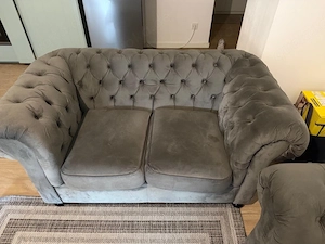 Ich verkaufe drei hochwertige Chesterfield Sofas in edlem Samtstoff. Zustand: Neu kaum benutzt Material: Samt (weich & hochwertig) Klassisches Chesterfield-Design mit Knopfheftung Sehr bequem und stabil 1x 2-Sitzer: Klein 550 VB 2x 2-Sitzer: Groß je 750 VB Kann auch als set gekauft werden! Ideal ...