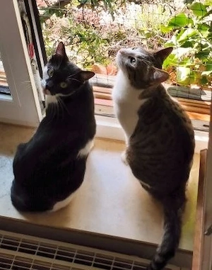 Ellen (weiß-schwarz) und Zora (weiß-grau getigert), geb. ca. April 2025, kastriert, geimpft, entwurmt, gechipt, mit EU-Heimtierpass, negativ getestet auf FIV und FeLV. Schutzgebühr je 150 Euro bei Vermittlung. Ellen & Zora wurden gemeinsam mit Tobi & John sowie Alis & Mickey (siehe ) in Rumänien in ...