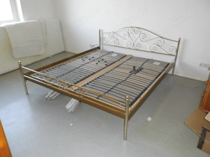 Goldfarbenes, Metallrahmen Doppelbett, 2 Lattenroste 90 x 200