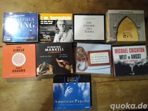 Verkaufe hier meine Hörbuch-Sammlung mit verschiedenen spannenden Titeln. Die Sammlung enthält folgende Hörbücher: Stephen King - Atlantis Henning Mankell Krimi Michael Crichton - Welt in Angst Der Circle von Dave Eggers American Psycho Und weitere interessante Titel Alle CDs sind in gutem ...
