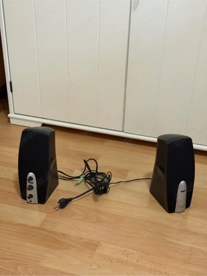 Verkaufe ein Stereo-Lautsprecher-Set mit zwei Boxen in sehr gutem Zustand. Funktioniert einwandfrei und bietet klaren, kräftigen Sound. Ideal für PC, Laptop oder andere Geräte mit 3,5-mm-Klinkenanschluss einfach anschließen und sofort nutzen. Details: 2 Lautsprecher (Stereo) 3,5-mm-Klinkenanschluss ...