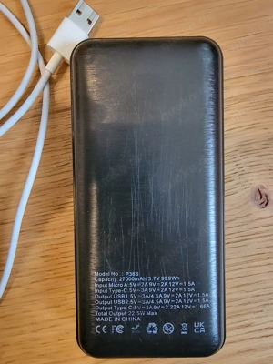 Verkaufe meine voll funktionsfähige Powerbank von Paidashu. Sie hat eine sehr hohe Kapazität (27.000 mAh) und lädt dank 22.5W Fast Charge extrem schnell. Zustand: Einwandfrei, normale Gebrauchsspuren. Besonderheit: Digitale Prozentanzeige für den Akkustand. Anschlüsse: USB-C USB-A (siehe Fotos). ...
