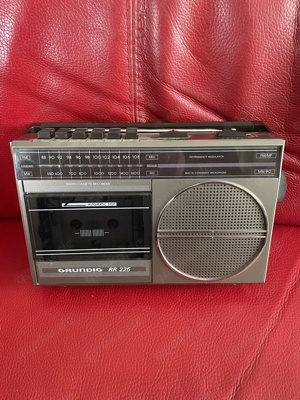 Grundig RR225 Radio Cassette Recorder Kassettenrecorder Topzustand , Strom oder Batteriebetrieb , optisch wie neu ,Radio spielt ,Antenne nicht verbogen ,Kassettendeck schneller Vor - und Rücklauf funktionieren ,Playfunktion funktioniert nach einem kurzen Anlauf auch. Das Gerät stand sicherlich 30 Jahre ...