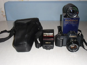 Canon T50 Kleinbild-Spiegelreflexkamera für Hobbyfotografen oder Sammler Bestehend aus: Kamera Canon T50 Canon Objektiv FD 50mm 1: 1.8 Maginon Objektiv 1 : 3,5 4,5 35mm 135mm Macro Multicoated (Mehrschichtvergütung) In Styropor-Originalverpackung Canon Speedlite (Blitzlicht) 244T ...