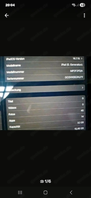 Ich verkaufe hier ein Apple iPad Air (1. Generation) mit 32 GB Speicher in der Wi Fi + Cellular Variante (Modell: MD792FD B). Das Gerät ist voll funktionsfähig und wurde sorgfältig behandelt. Technische Daten: - 32 GB Speicher - Wi Fi + Cellular (mit SIM nutzbar) - 9,7" Retina Display - Farbe: Spacegrau - ...