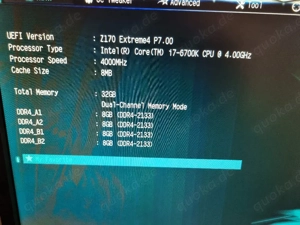 See translation Guten Tag , Ich verkaufe Gaming Pc . Austattung Stabile Captiva Gehäuse mit Galss und 4 MSI RGB Lüfter Motherboard Asrock Z170 Extreme 4 P7.00 Prozessor Intel I7 6700k 4.00 Ghz , 4 kerne mit Wasserkühler Corssair. 32 Gb Ram Arbeitspeicher Ddr4 Grafikkarte Nvidia Quadro M4000 8GB HDD Festplatte ...