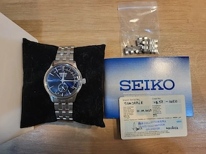 Marke SEIKO Kollektion PRESAGE Modell SSA347J1 Garantie 3 Jahre Farbe blau silber Wasserdichtigkeit 50 m 5 ATM Glas Hardlex Ziffern auf dem Zifferblatt Indizes Typ Herren Analogtyp GERÄT Kaliber SEIKO 4R57 Mechanismus mit automatischer Einstellung Gangreserve (Stunden) 41 Anzahl ...