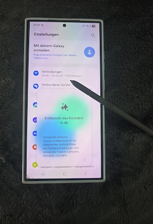 Verkaufe hier mein gut erhaltenes Samsung Galaxy S24 Ultra in der Farbe Titanium Grey . Es ist in einen sehr guten Zustand nur das an einer ganz kleinen Stelle unten links im Display ein ganz kleiner riss ist es beeinträchtigt aber garnichts sonst sind keine Kratzer auf dem Handy oder auf der Kamera ...