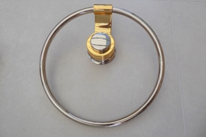 Handtuchring der deutschen Fa. Wico, Serie Rainbow, Zierrosetten Modell Riefe aus speziallegiertem handpoliertem Messing Handtuchring 30,00 EUR Der Privatverkauf erfolgt unter Ausschluss jeglicher Gewährleistung